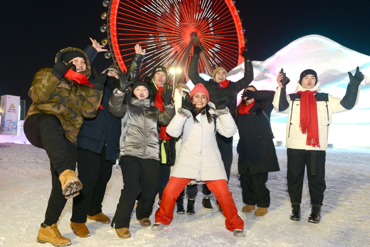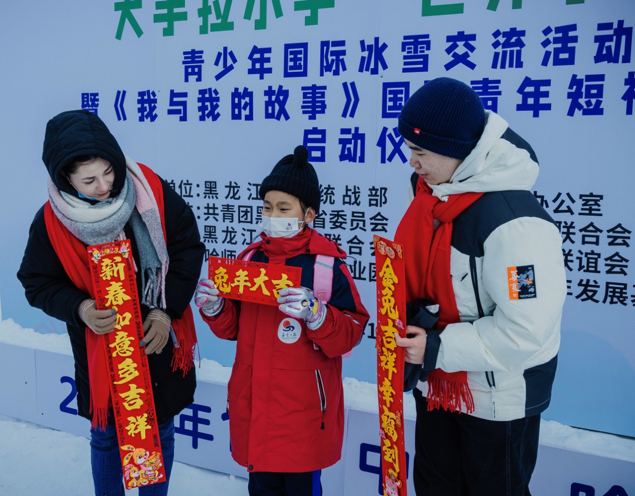 當(dāng)天上午,在雪博會,來自黑龍江大學(xué)的各國留學(xué)生代表與中國青少年結(jié)對互動,互贈新春禮物,表達(dá)對即將迎來的兔年美好祝福。中外青少年小手拉大手,共游太陽島雪博會,鯉魚躍龍門、圓夢啟程、雪冠博覽等雪雕雪景讓大家流連忘返。世界各國青少年一起雕刻“宇航員”雪雕,送上春聯(lián)祝福語,體驗(yàn)了中國傳統(tǒng)文化和濃濃的年味,表達(dá)了對世界文化共融的美好祝愿。