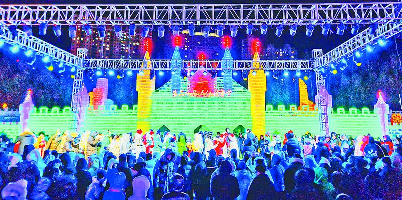 在雪地上潑雪、打鬧,人們身上沾著雪,頭上冒著汗,臉上帶著笑……這里是一片歡樂的海洋。變形金剛、小黃人、冰雪奇緣等以卡通動漫為主題的冰雪景觀;還有引進(jìn)最新的滴水燈、玫瑰燈、瀑布燈、星光燈等LED燈光打造的大型打卡燈光秀;更有雪龍?zhí)柣?、碰碰車、雪人雕塑等娛樂?xiàng)目,這里已經(jīng)成為佳木斯市旅游打卡新地標(biāo)。