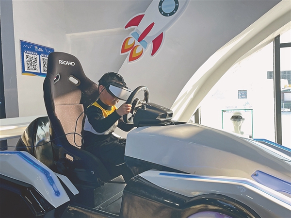 “我還要再體驗一次,太好玩了?!苯衲?歲的郭浩宇小朋友用VR眼鏡體驗了大滑梯之后,意猶未盡。