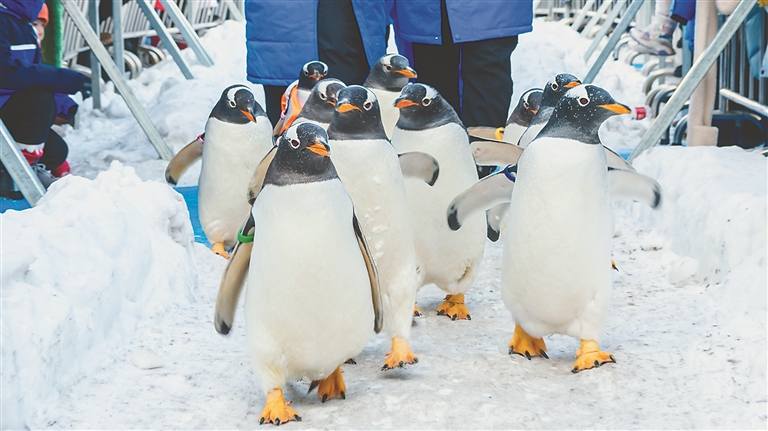 “我們就是專程為‘淘學企鵝’而來,能在哈爾濱看到全國僅有的企鵝冰雪巡游,真的不虛此行?!痹缭?年前,上海游客孟蕓就通過短視頻看到它們背著小書包打卡黑龍江美景的身影,成為妥妥的“鵝粉”。她說,為了能在前排近距離觀看,她更是早早就來到極地廣場等候。哈爾濱極地公園營銷部經理崔美艷說,“淘學企鵝冰雪巡游”自啟動以來,每日引萬人打卡,成為今冬的爆款網(wǎng)紅活動,吸引全國游客來到哈爾濱看企鵝打卡拍攝,全網(wǎng)曝光量更是在25天的時間里突破了8.5億。