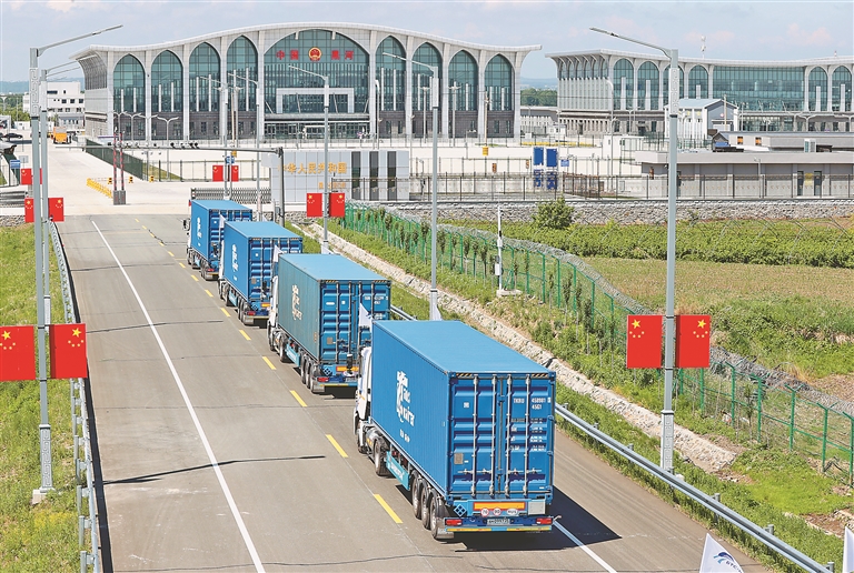 “黑河經(jīng)驗”碩果累累——跨境運輸車輛“一站通”綜合查驗管控新模式,有效解決了進出境運輸企業(yè)辦理車輛注冊備案時存在的堵點;創(chuàng)新自走機械通關(guān)新模式,為口岸通關(guān)提供了可復制可推廣的“黑河樣板”;創(chuàng)新合作模式,打造形成規(guī)劃統(tǒng)籌、產(chǎn)業(yè)互動、政策銜接、利益共享的協(xié)同發(fā)展機制,共同推進跨境集群建設(shè),取得重大進展;利用跨境電商海外倉、邊境倉、中繼倉、前置倉,通過數(shù)據(jù)集成、貨物集運,實現(xiàn)多倉聯(lián)動,打通了“一帶一路”沿線國家進出口雙向貨運物流便捷通道,運輸時間縮短、物流成本降低、貨物快速運達,提高了跨境運輸效率……首創(chuàng)推出典型案例137項,其中40項獲評全省優(yōu)秀案例,形成了一批可復制可推廣的“黑河案例”。