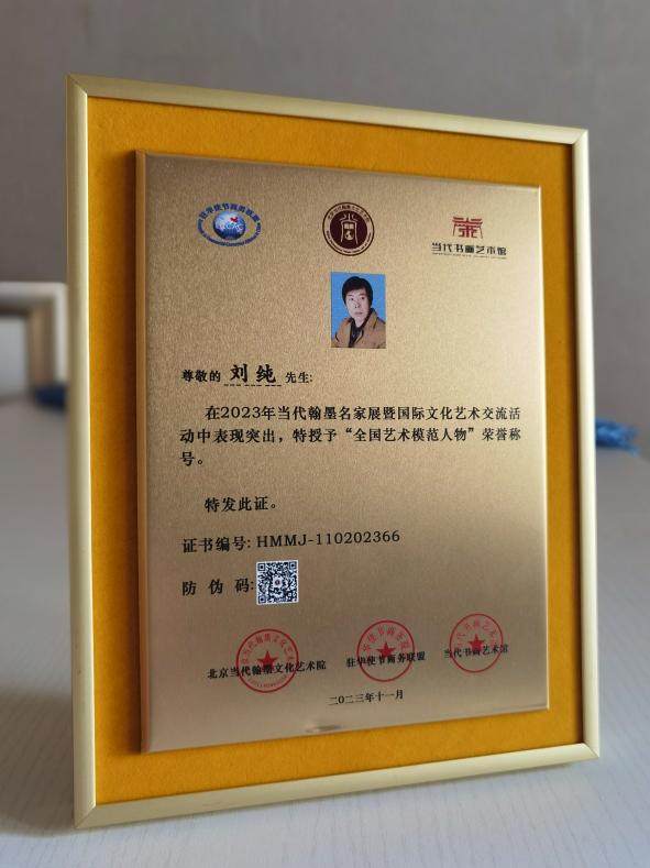 黑龍江經(jīng)濟(jì)網(wǎng)訊(記者王振紅 文/攝)日前,由北京當(dāng)代翰墨文化藝術(shù)院主辦的全國第五屆當(dāng)代翰墨名家展頒獎盛典在北京圓滿結(jié)束。應(yīng)巴基斯坦駐華大使館邀請,與會藝術(shù)家參加了中巴文化藝術(shù)交流并贈送書畫作品。龍江著名美術(shù)家劉純獲大賽一等獎,被主辦單位與駐華使節(jié)商務(wù)聯(lián)盟(ECCAC)共同授予“全國藝術(shù)模范人物”榮譽(yù)稱號和中外國際文化交流大使。