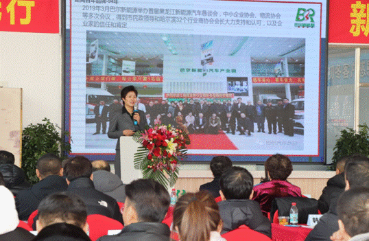 黑龍江巴爾新能源汽車銷售有限公司董事長高臣文、總經(jīng)理徐娟就物聯(lián)網(wǎng)+新能源汽車產(chǎn)業(yè)相關(guān)情況以及發(fā)展新能源汽車產(chǎn)業(yè)規(guī)劃進行路演推介,并作民營企業(yè)家理想信念報告。