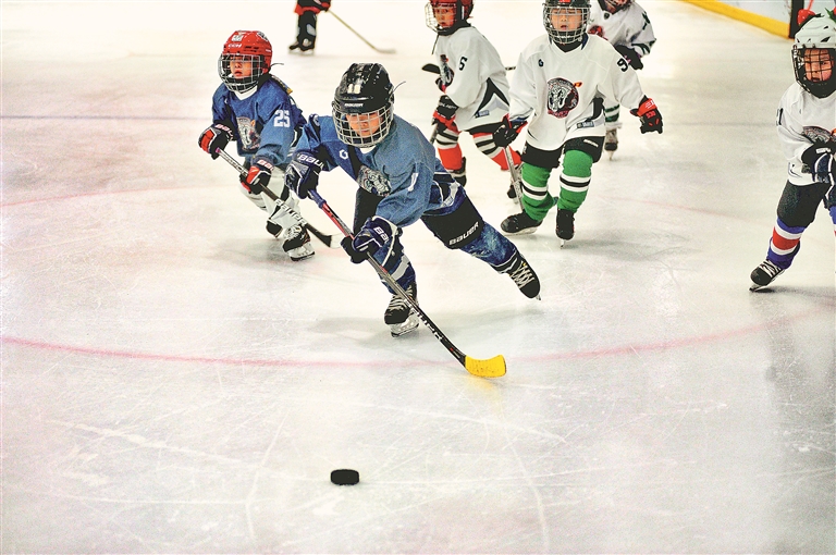 本報訊(記者蘇強)5月3日上午,在哈爾濱市道里區(qū)一處商場內的冰上運動中心,兩支“萌娃”冰球隊正進行著比賽。