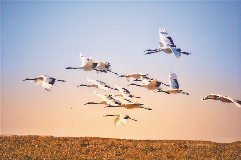 扎龍國家級自然保護區(qū)內(nèi)碧波蕩漾、水草豐盛,游客行走在濕地的棧道上,感受微風(fēng)清涼,在自然大氧吧里暢快呼吸,看丹頂鶴野化放飛,與丹頂鶴近距離互動,人鳥共生自然和諧……好一幅“荻花不染塵埃色,野鳥閑鳴天籟聲”的醉人畫卷。