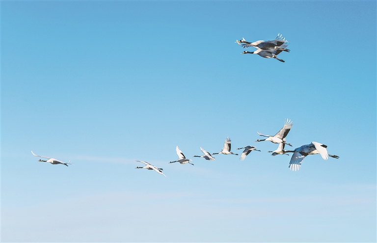 候鳥(niǎo)成隊(duì)飛翔在林區(qū)上空。圖片由受訪(fǎng)單位提供