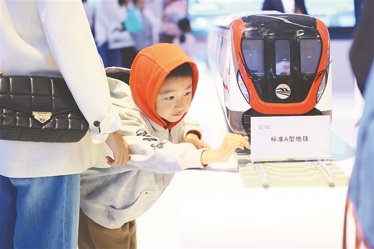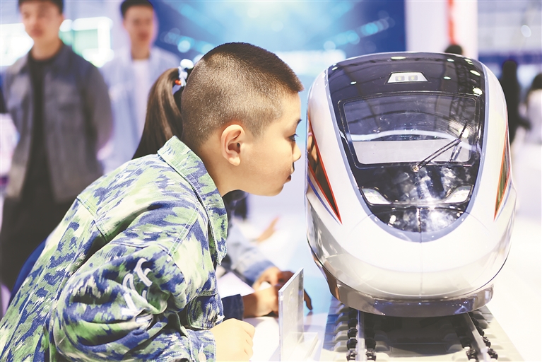 第三十三屆哈洽會(huì)成為了孩子們長(zhǎng)見識(shí)的窗口。在中國(guó)中車的展臺(tái)前,孩子們的目光被一組組精美的列車模型所吸引?!拔覐膩頉]有見過這么多不同種類的列車模型”“我最喜歡的是和諧號(hào),它看起來科技感十足?!蹦芡瑫r(shí)看到動(dòng)車、和諧號(hào)還有地鐵并排擺在一起,孩子們興奮不已。