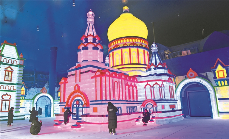 游客在伏天里走進(jìn)哈爾濱冰雪大世界夢幻冰雪館,穿著厚厚的外套,打卡一座座美輪美奐的冰雕雪塑,體驗-12℃的浪漫。據(jù)工作人員介紹,自夢幻冰雪館開館以來,前來參觀的游客眾多,換衣處一直處于排隊狀態(tài),人數(shù)最多時要排出近百米。