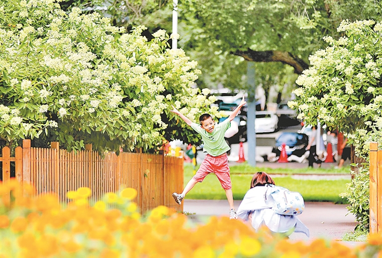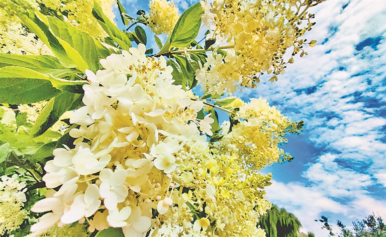 29日,哈爾濱市兒童公園內,數(shù)十株圓錐繡球正陸續(xù)開花。這些美麗的花朵為夏日冰城再添一道風景,吸引了許多游客前來觀看、拍照。