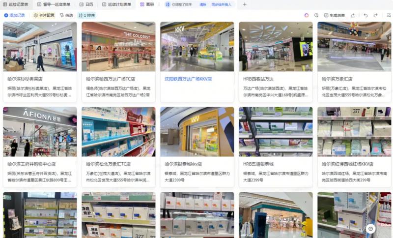 線下巡店工作能最大程度保障各終端貨品銷(xiāo)售質(zhì)量。過(guò)去,由于巡店工作涉及外出出差,巡店照片數(shù)據(jù)手機(jī)端無(wú)法操作整理匯總,影響問(wèn)題處理時(shí)效且增加無(wú)用工作量。現(xiàn)在敷爾佳運(yùn)用飛書(shū)表單移動(dòng)端操作,隨時(shí)上傳巡店結(jié)果及照片,表格儀表盤(pán)視角可以查看數(shù)據(jù)并進(jìn)行一段時(shí)間內(nèi)的環(huán)比、同比分析,基于數(shù)據(jù)分析做任務(wù)下達(dá),一次巡檢從發(fā)現(xiàn)問(wèn)題到整改問(wèn)題的全流程都能包攬,對(duì)于每位巡檢員來(lái)說(shuō),每天至少節(jié)省2.5小時(shí)數(shù)據(jù)統(tǒng)計(jì)時(shí)間,同時(shí)更清晰的了解每個(gè)督導(dǎo)的外出工作情況 。此外,查貨溯源沒(méi)有系統(tǒng)的數(shù)據(jù)存檔,多個(gè)渠道數(shù)據(jù)無(wú)法同步,無(wú)數(shù)個(gè)sheet篩選查詢(xún)數(shù)據(jù),容易出錯(cuò)?,F(xiàn)在,運(yùn)用多維表格協(xié)同操作,多個(gè)維度查看所需數(shù)據(jù),所有查貨情況能被沉淀和實(shí)時(shí)查看。