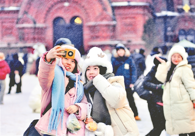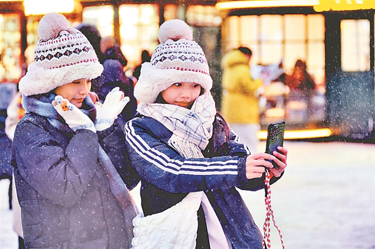 在各處景點(diǎn),降雪讓游客們游玩興致更濃,大家紛紛在雪中拍照,記錄下精彩瞬間,感受降雪帶來(lái)的快樂(lè)。