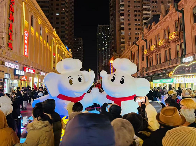 除了“白象”標(biāo)志性小象IP格外吸睛之外,因其與“對象”諧音的巧妙設(shè)計,也吸引著往來行人紛紛駐足。雪雕前人潮涌動,不少市民游客在“對象”前合影留念。這一創(chuàng)意不僅為游客增添別樣的溫暖與歡樂,也在社交媒體掀起一陣“找對象”的熱潮?;顒悠陂g,“對象雪雕走紅哈爾濱”的話題登上熱搜榜。不少網(wǎng)友調(diào)侃:“這就去哈爾濱找對象?!币灿腥吮硎?,看完小象雪雕,感覺爾濱的冬天都充滿了浪漫的氣息。
