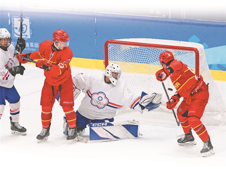 11日,哈爾濱第九屆亞冬會男子冰球迎來1/4決賽。在晚8時開始的比賽中,中國隊對陣中國臺北隊,經(jīng)過激烈比拼,中國隊7比2戰(zhàn)勝中國臺北隊,晉級四強。