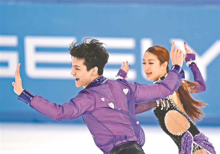 11日下午,在第九屆亞冬會(huì)花樣滑冰冰上舞蹈韻律舞比賽中,首次參加亞冬會(huì)的00后中國組合任俊霏/邢珈寧以64.29分暫列第二。任俊霏/邢珈寧以放克組合地火風(fēng)樂隊(duì)的作品混編為伴奏,頗有復(fù)古迪斯科舞風(fēng),兩人配合嫻熟,曲舞合一,優(yōu)美的舞姿和精妙的配合引來主場觀眾的陣陣掌聲。