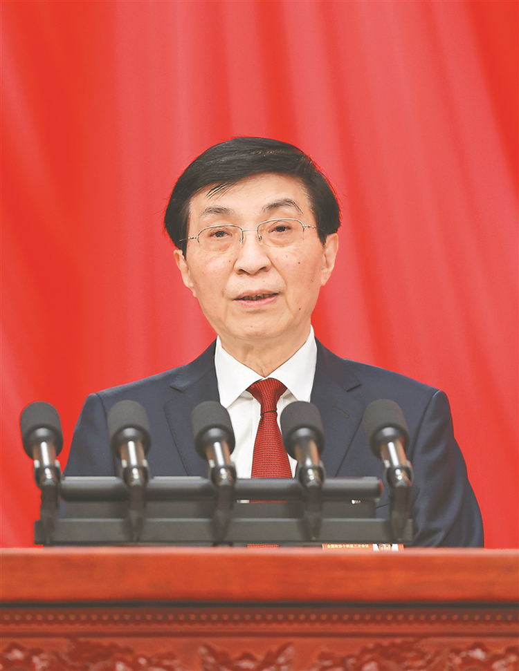 王滬寧代表政協(xié)第十四屆全國(guó)委員會(huì)常務(wù)委員會(huì),向大會(huì)報(bào)告工作。