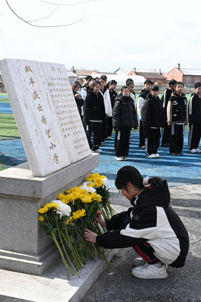 活動中,黨員和少先隊員代表向老黨員張慶云同志紀(jì)念碑敬獻鮮花,并全體緬懷。團省委、省捐助中心、哈爾濱市注冊會計師行業(yè)黨員代表為學(xué)生們送去了圖書和學(xué)習(xí)用品。