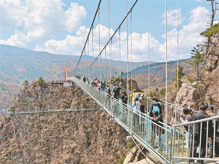 體驗(yàn)玻璃鵲橋。本報記者 李健攝