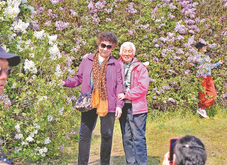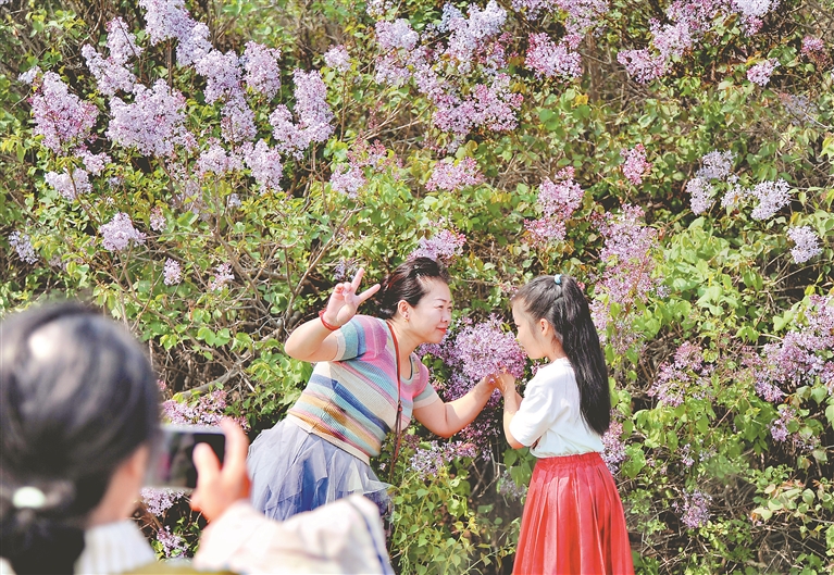 11日,陽(yáng)光明媚,空氣清新。哈爾濱市群力丁香公園內(nèi),一片片丁香花已全部盛開(kāi),白色的、紅色的、紫色的,散發(fā)著迷人的香氣。很多市民和媽媽一起來(lái)賞花、拍照,以這種方式祝福母親節(jié)日快樂(lè)。