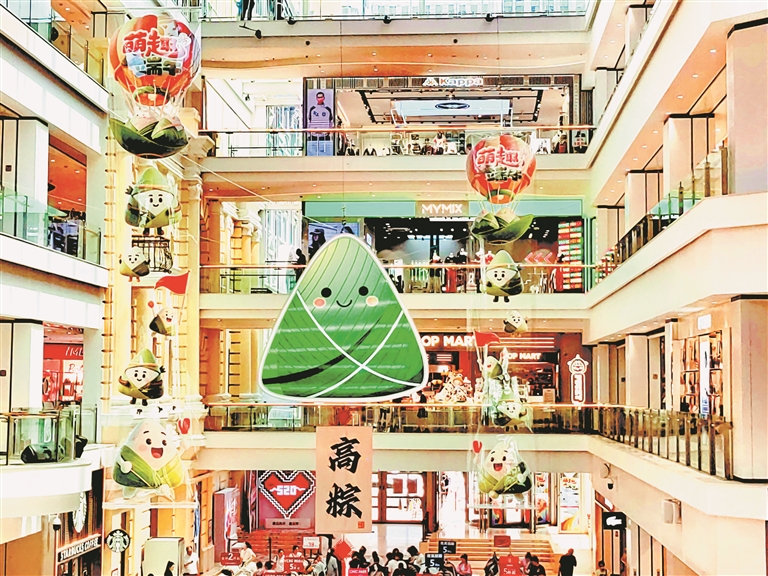 為迎接端午節(jié)的到來,各商場(chǎng)在引進(jìn)充足貨源的同時(shí),也都裝飾一新,節(jié)日氣氛濃厚。