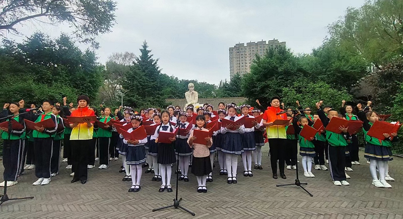 活動(dòng)現(xiàn)場(chǎng),愛(ài)樂(lè)男聲合唱團(tuán)與哈爾濱市少兒藝術(shù)團(tuán)聯(lián)袂演繹《呼蘭河的小姑娘》《夢(mèng)中的呼蘭河》等改編自蕭紅作品的曲目,童聲清澈與男聲渾厚交織,勾勒出文學(xué)與音樂(lè)的百年共鳴。原黑龍江廣播電視臺(tái)播音指導(dǎo)肖霞朗誦《呼蘭河傳》經(jīng)典片段,令現(xiàn)場(chǎng)觀眾仿佛置身于“祖父的后花園”。