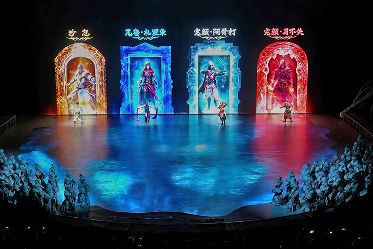 2.0版本《王的戰(zhàn)車》以北方部落的古老傳說(shuō)為藍(lán)本,將傳統(tǒng)技藝與現(xiàn)代科技巧妙融合,既保留了傳統(tǒng)雜技的力量與驚險(xiǎn),又通過(guò)全息投影技術(shù)、天幕+地屏等科技手段賦予其全新的藝術(shù)表達(dá)。