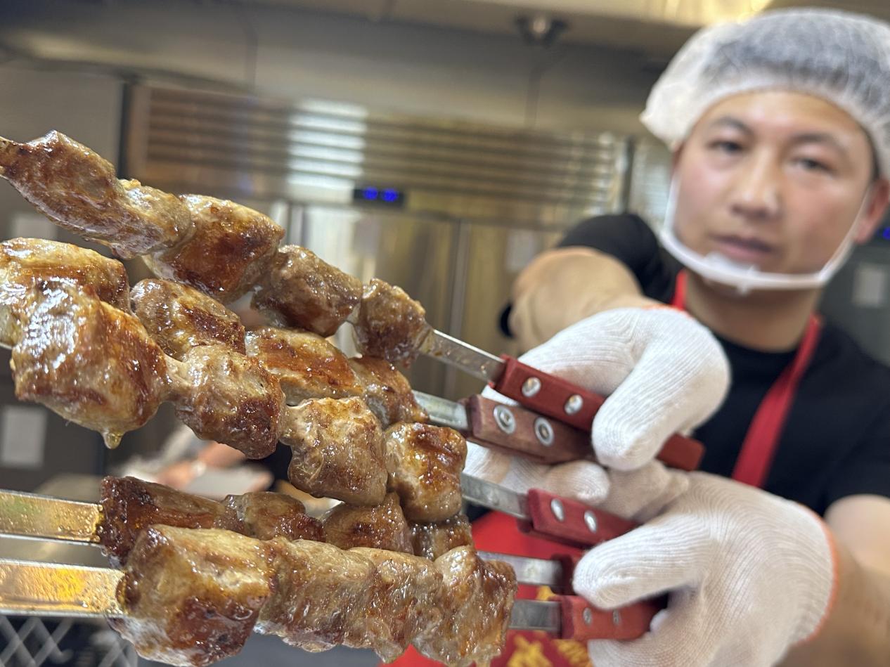 暮色降臨,綏化市青岡縣街頭的炭不二燒烤店內(nèi)早已座無(wú)虛席,滋滋冒油的大油邊在炭火上翻滾,金黃油亮的肉串被烤得滋滋作響,食客們大快朵頤。從明水一店,開(kāi)到青岡二店,一路飄香。店主王安國(guó)穿梭在人群中,臉上洋溢著喜悅:“每天400多串根本不夠賣(mài)!試營(yíng)業(yè)以來(lái),店里天天爆滿,老顧客帶著新客人,都沖著這口大油邊來(lái)的?!闭f(shuō)話間,一位熟客又推門(mén)而入,她笑著對(duì)服務(wù)員說(shuō):“老樣子,先來(lái)十串大油邊!嘗過(guò)一次就忘不了這脆皮爆汁的口感,太幸福了!”回頭客絡(luò)繹不絕。