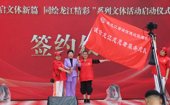 在誠信龍江志愿服務(wù)總隊(duì)成立儀式上,張波會長莊重地將象征“奉獻(xiàn)、友愛、互助、進(jìn)步”精神的“誠信龍江志愿者服務(wù)總隊(duì)”隊(duì)旗,授予首任隊(duì)長。這面旗幟的傳遞,標(biāo)志著一支服務(wù)社會、傳播誠信理念的專業(yè)志愿隊(duì)伍正式啟航。未來,志愿者們將深度融入系列文體活動的組織、服務(wù)與宣傳,以行動詮釋志愿精神,用熱忱擦亮“誠信龍江”品牌,為活動成功舉辦和誠信文化播撒注入強(qiáng)勁的志愿力量。