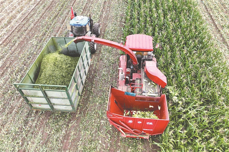 收割現(xiàn)場一派忙碌景象,農(nóng)場調(diào)配的2臺青貯下棒一體收割機高效作業(yè),實現(xiàn)莖穗同步收獲,效率較傳統(tǒng)模式提升3倍以上,10輛青貯運輸車與4輛糯玉米棒運輸車有序配合,日均完成150畝。作業(yè)中,12名黨員主動組成“助農(nóng)突擊隊”,深入田壟撿拾玉米,確保顆粒歸倉。