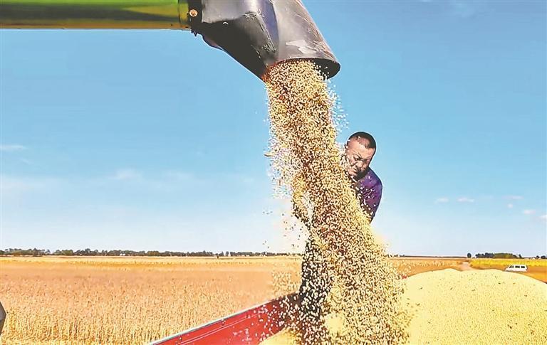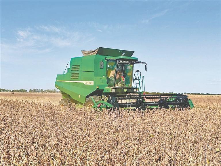 國(guó)慶假日,豐收時(shí)節(jié)。秋風(fēng)拂過(guò)寶清縣青原鎮(zhèn)的田野,連片的大豆田泛起金黃浪涌,飽滿的豆莢壓彎豆稈,收割機(jī)轟鳴作業(yè),農(nóng)戶們忙著分揀、裝袋,豐收的喜悅在田間地頭蔓延。