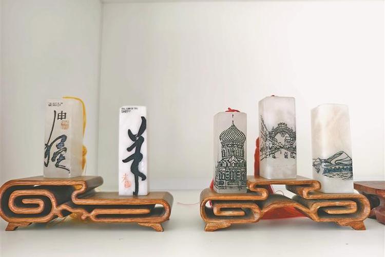 新區(qū)創(chuàng)意設(shè)計產(chǎn)業(yè)園與林大合作開發(fā)的凍石文創(chuàng)刻章。