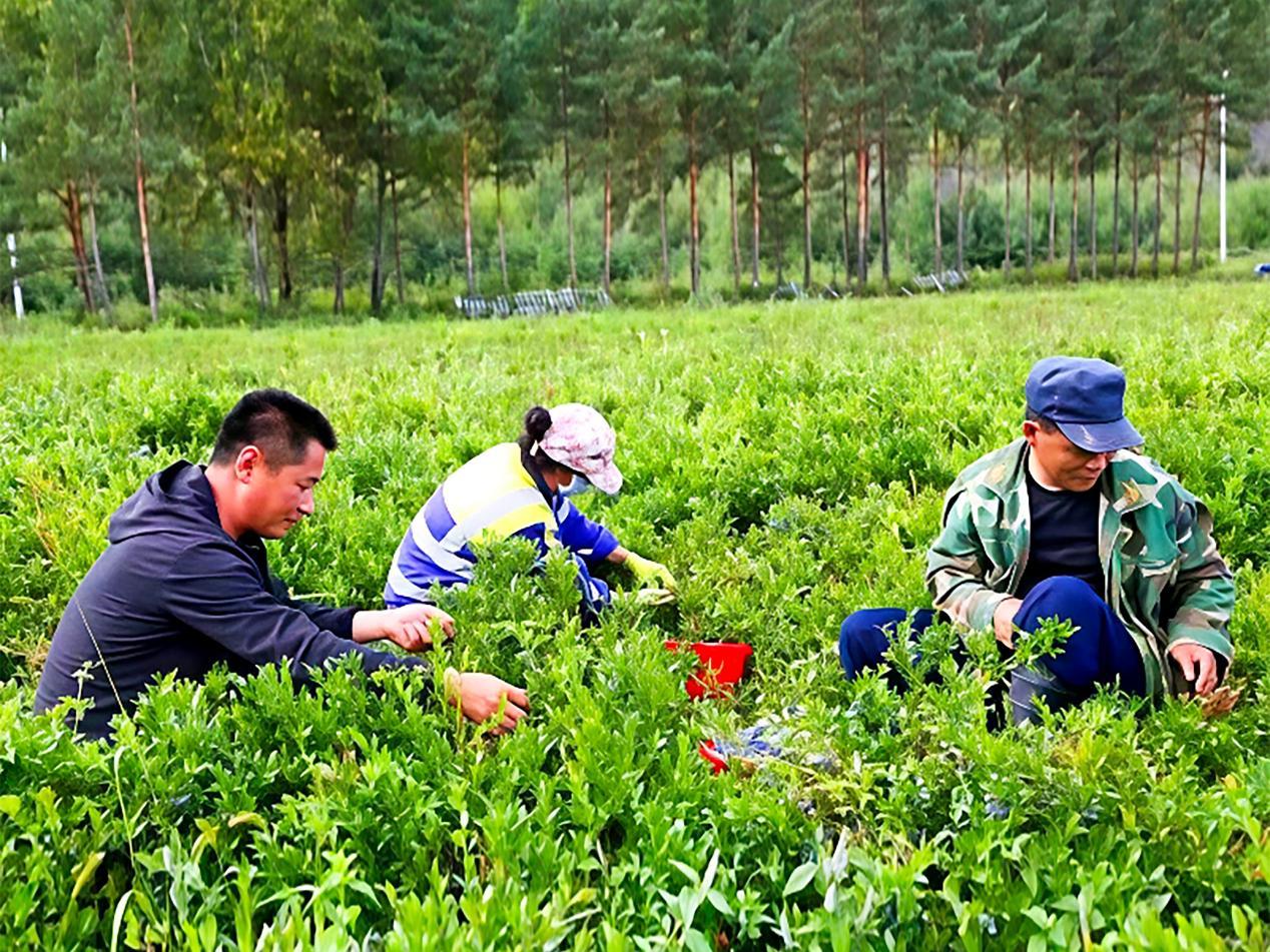 林場工作人員正在采摘藍(lán)莓(張凱強(qiáng) 攝)