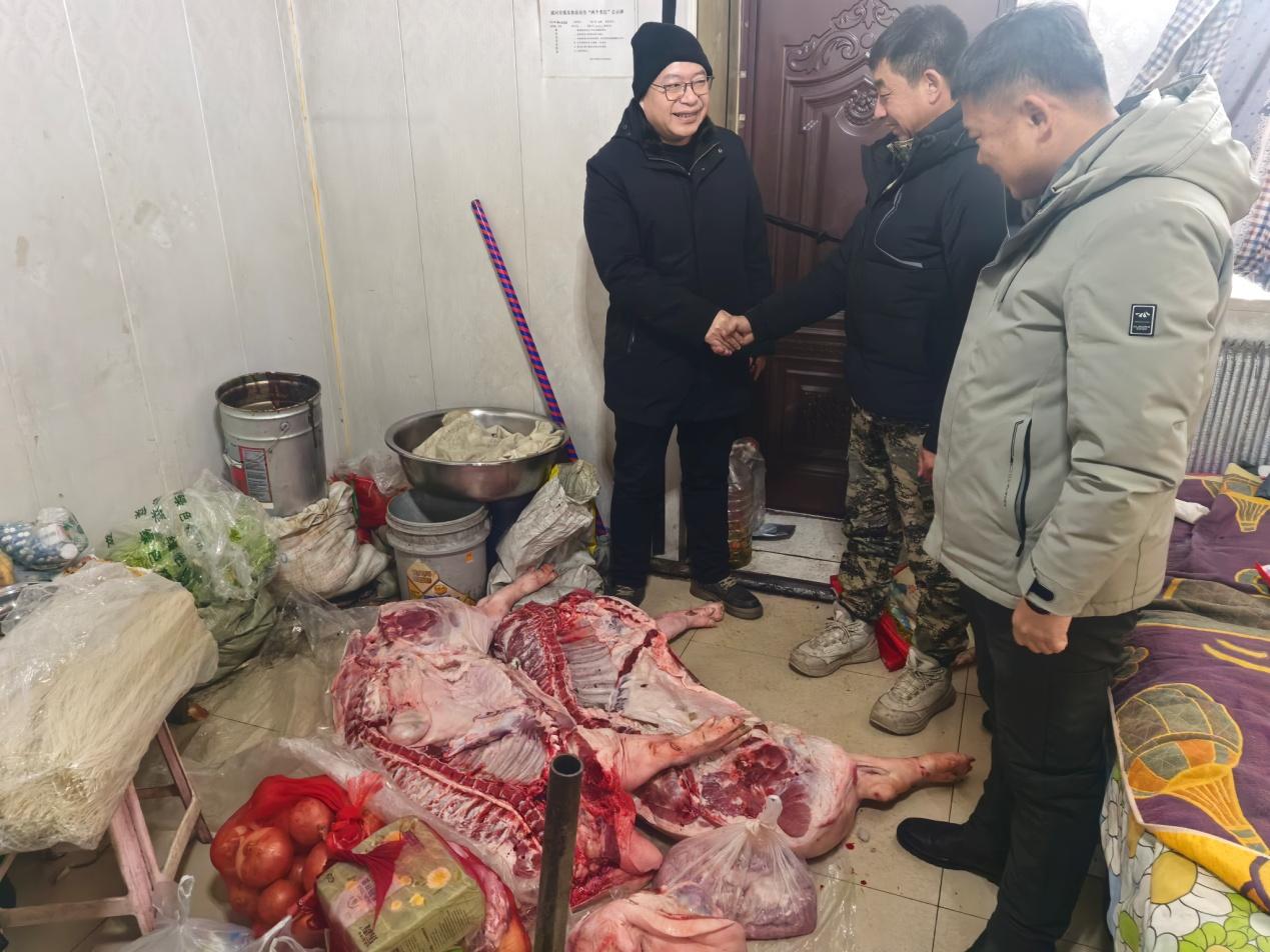 “冬季深山作業(yè),職工的御寒保暖和飲食保障是我們最牽掛的事?!背焙恿謭鍪冀K堅(jiān)持“職工的‘心上事’就是林場的‘要緊事’”理念,提前與各作業(yè)組精準(zhǔn)對接,深入了解一線實(shí)際困難與需求,針對性籌備慰問物資。深入冬季營林生產(chǎn)作業(yè)點(diǎn),開展歲末一線慰問活動,慰問車隊(duì)滿載 390 斤豬肉、新鮮水果、各類蔬菜、防寒棉衣、保暖手套等冬季防護(hù)用品和生活物資。抵達(dá)作業(yè)點(diǎn)后,慰問組詳細(xì)查看了臨時(shí)板房的取暖設(shè)備運(yùn)行、食宿環(huán)境保障等情況,仔細(xì)檢查供暖管線、消防設(shè)施等安全隱患點(diǎn),確保冬季生產(chǎn)生活安全。“夜間宿舍溫度能達(dá)到多少?”、“日常食材儲存是否方便”,詢問大家的工作生活狀況,傾聽職工訴求。針對長期駐守作業(yè)點(diǎn)可能出現(xiàn)的食材新鮮度不足問題,林場黨支部副書記表示,“從下周起,定期配送新鮮蔬菜,保障大家營養(yǎng)均衡,讓大家吃得放心、干得舒心?!睜I林副場長圍繞冬季營林作業(yè)規(guī)范、機(jī)械設(shè)備防寒維護(hù)等內(nèi)容開展專業(yè)指導(dǎo),提醒隊(duì)員們嚴(yán)守安全生產(chǎn)規(guī)程,做好防寒防凍措施,確保生產(chǎn)安全與作業(yè)質(zhì)量雙達(dá)標(biāo)。