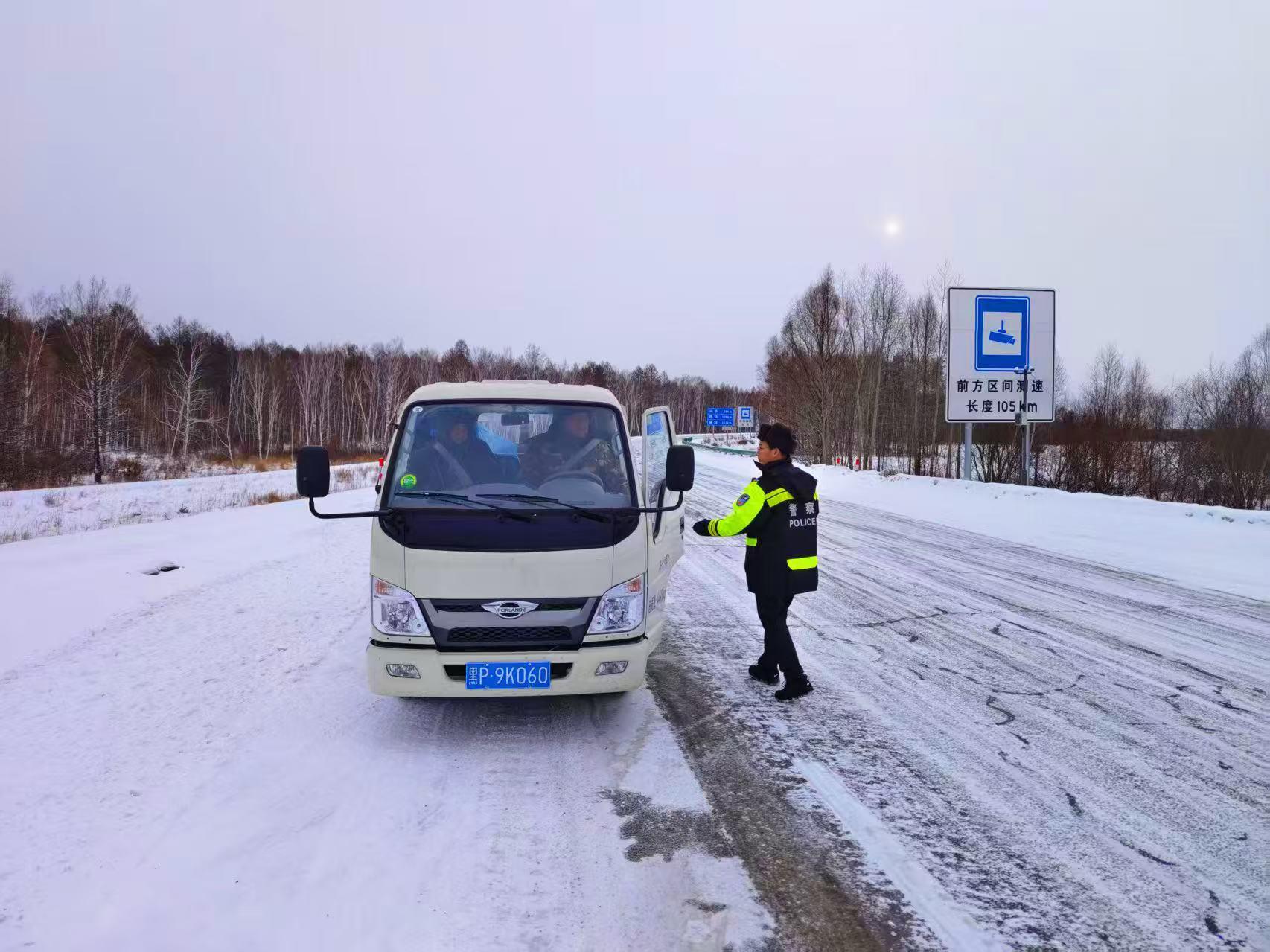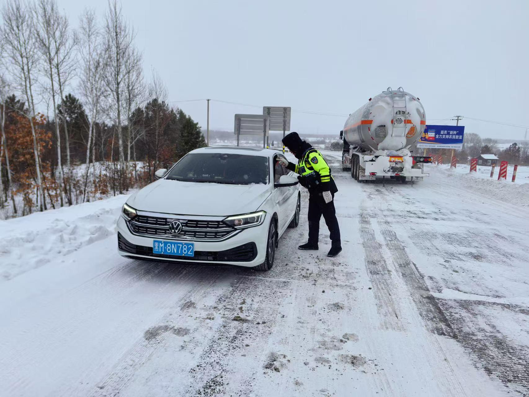 隨后,民輔警駕駛警車小心翼翼地穿行在積雪路段,一邊緩慢行駛,一邊實(shí)時(shí)觀察路面情況,并不時(shí)向游客講解雪天出行安全常識(shí),提醒景區(qū)內(nèi)棧道濕滑需謹(jǐn)慎慢行。臨別前,呼瑪公安民輔警再次叮囑游客注意游覽安全,及時(shí)關(guān)注天氣變化和返程路況,必要時(shí)可隨時(shí)聯(lián)系景區(qū)執(zhí)勤崗點(diǎn)求助。