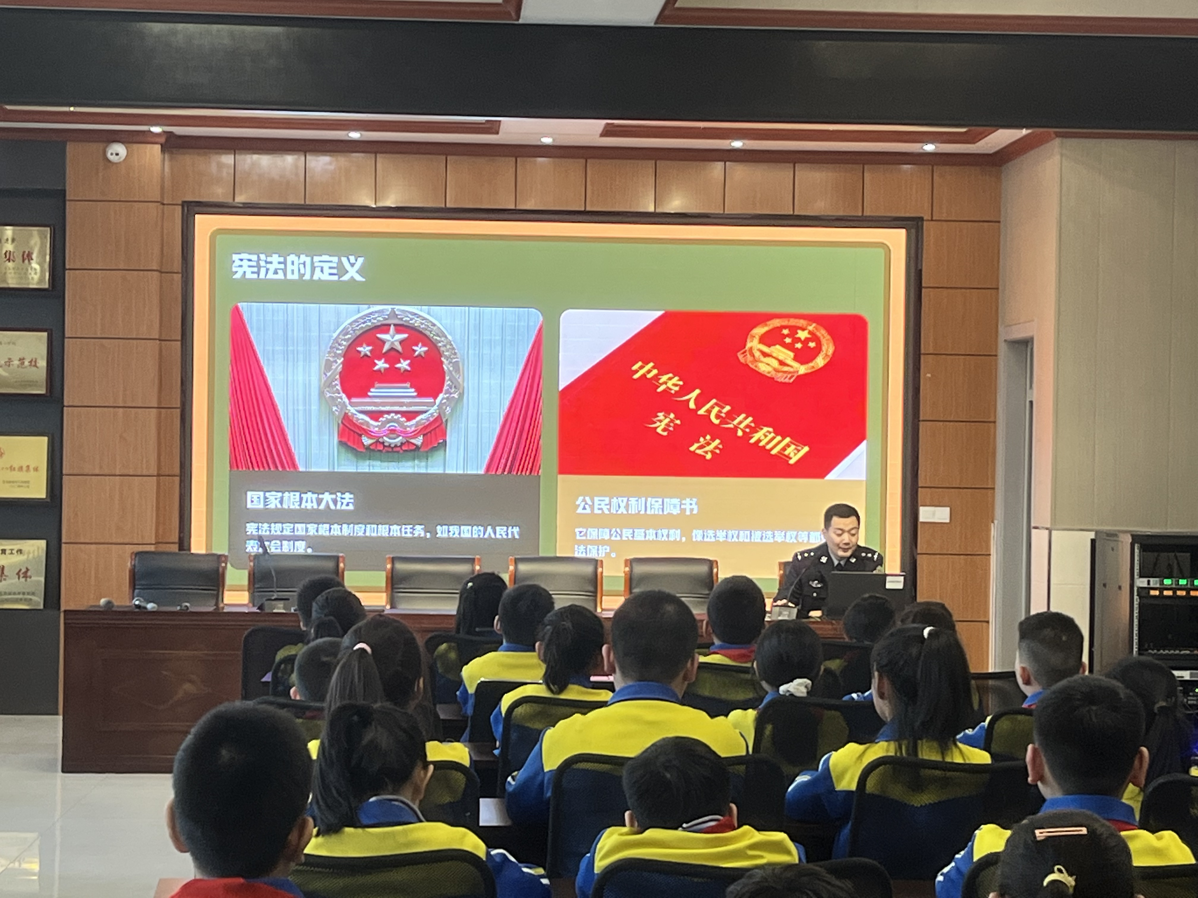 講座中,民警以通俗生動的語言,圍繞三大核心內(nèi)容展開宣講:一是憲法基礎(chǔ)認(rèn)知,重點(diǎn)闡釋憲法作為國家根本大法的地位與作用,結(jié)合受教育權(quán)、人身安全保障、遵守校園規(guī)則等小學(xué)生熟悉的生活場景,讓學(xué)生真切感受到憲法并非“遙遠(yuǎn)的法律”,而是與自身息息相關(guān)的行為準(zhǔn)則;二是權(quán)利與義務(wù)對應(yīng),明確小學(xué)生依法享有的受教育權(quán)、人格尊嚴(yán)不受侵犯等合法權(quán)利,同時詳細(xì)講解遵守憲法法律、尊敬師長、維護(hù)公共秩序等必須履行的義務(wù),引導(dǎo)學(xué)生樹立“權(quán)利有邊界,義務(wù)須履行”的法治觀念;三是校園法治安全,針對校園欺凌、交通安全、網(wǎng)絡(luò)安全、防范陌生人侵害等問題,民警結(jié)合憲法及相關(guān)法律對未成年人的保護(hù)規(guī)定,傳授簡單實(shí)用的自我保護(hù)方法和求助途徑,著重強(qiáng)調(diào)遇到危險時可及時撥打110報警電話或告知老師、家長。