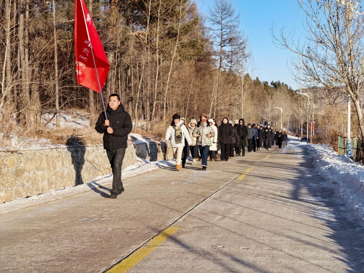 活動中,150余名林業(yè)局機(jī)關(guān)干部職工在原林園門前集結(jié)。隨著出發(fā)指令下達(dá),徒步隊(duì)伍沿著預(yù)設(shè)路線有序前行,有經(jīng)驗(yàn)豐富的職工帶頭穩(wěn)步前行,不時提醒身旁同事注意腳下安全。年輕干部們活力滿滿,時而相互鼓勁,時而駐足欣賞沿途銀裝素裹的冬日盛景,盡管天氣寒冷,但絲毫未影響大家的參與熱情。經(jīng)過兩個小時的徒步,大家攜手并進(jìn)順利抵達(dá)終點(diǎn)。