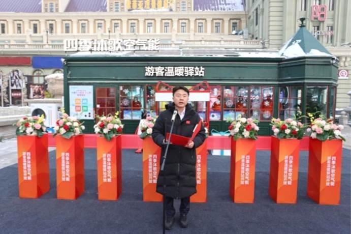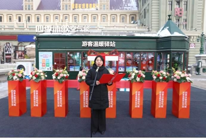 共青團(tuán)哈爾濱市委副書記徐翎致辭時(shí)指出,哈爾濱以“世界冰雪旅游卓越城市”之姿驚艷全球,這一火熱盛況背后,也讓四季沐歌集團(tuán)連續(xù)三年傾力打造游客溫暖驛站的堅(jiān)守與付出,收獲了高度肯定,企業(yè)以科技暖意驅(qū)散凜冬嚴(yán)寒、用清潔能源護(hù)航八方游客、以“雙碳”使命點(diǎn)亮城市溫度的責(zé)任擔(dān)當(dāng)更贏得社會(huì)廣泛贊許。她表示,團(tuán)市委將以游客溫暖驛站為紐帶,廣泛匯聚青春動(dòng)能和社會(huì)力量,為驛站建設(shè)添磚加瓦,也真誠(chéng)呼吁各界持續(xù)關(guān)注溫暖驛站發(fā)展、支持哈爾濱青年發(fā)展型城市建設(shè),攜手為冰城高質(zhì)量振興注入青春動(dòng)能。