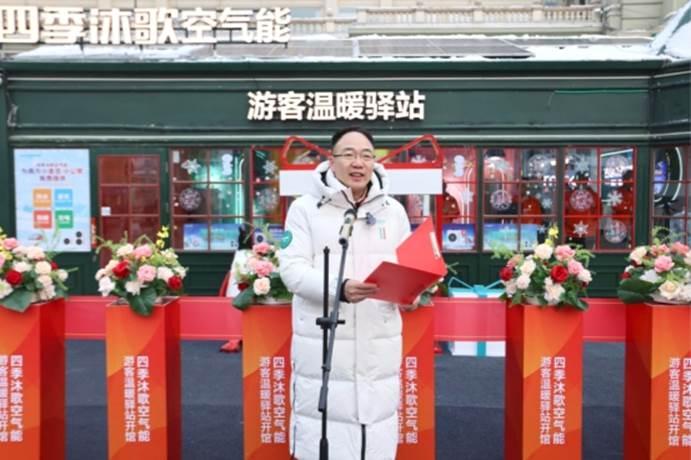 四季沐歌集團(tuán)總裁李駿在儀式講話中指出:“科技助力美好生活”絕非一句空洞口號(hào),而是集團(tuán)深耕綠色發(fā)展、踐行社會(huì)責(zé)任的核心內(nèi)核與行動(dòng)綱領(lǐng),依托前沿低碳技術(shù)打造的“溫暖驛站”應(yīng)用場(chǎng)景,以綠色賦能城市的生動(dòng)實(shí)踐贏得了廣大游客的深度認(rèn)可;面向未來,驛站將完成從便民服務(wù)場(chǎng)景到低碳科普實(shí)踐基地的價(jià)值進(jìn)階,這既是企業(yè)低碳理念的具象化延伸,更是以場(chǎng)景為媒、以實(shí)踐為橋播撒綠色發(fā)展種子的責(zé)任踐行,四季沐歌始終堅(jiān)信冰雪經(jīng)濟(jì)的高質(zhì)量發(fā)展離不開綠色低碳的底色,集團(tuán)將持續(xù)以技術(shù)創(chuàng)新助力哈爾濱冰雪經(jīng)濟(jì)與綠色發(fā)展深度融合,讓人與自然和諧共生的理念在這座冰雪之城中落地生根,向五湖四海傳遞延伸。