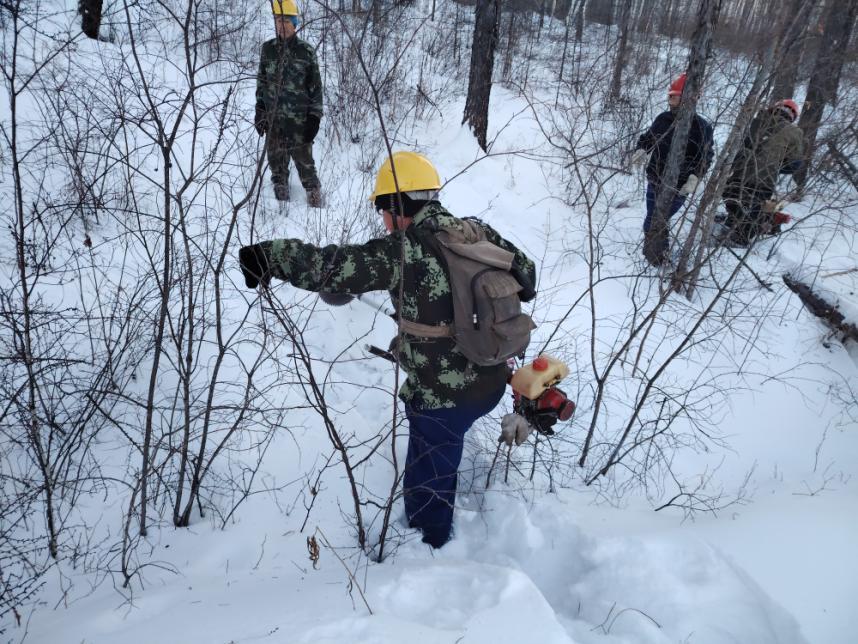 規(guī)范操作不松懈,筑牢安全“防護(hù)墻”。在各營林作業(yè)現(xiàn)場,寒風(fēng)凜冽卻擋不住職工們的工作熱情。大家嚴(yán)格遵守冬季營林作業(yè)規(guī)程,統(tǒng)一佩戴安全帽穿梭在林間,有條不紊地開展林木修枝、病腐木清理、林地?fù)嵊裙ぷ?。油鋸手?yán)格執(zhí)行“先檢查、再啟動、穩(wěn)操作”的流程,精準(zhǔn)把控作業(yè)角度;撫育隊員踩著厚雪,手持工具對林間枯死木、被壓木及對目的樹種生長存在影響的進(jìn)行有序清理、歸堆。從器械檢查到流程落實,每一個環(huán)節(jié)都嚴(yán)謹(jǐn)規(guī)范,安全帽上的反光條在皚皚白雪中格外醒目,成為林海間一道守護(hù)安全的風(fēng)景線。