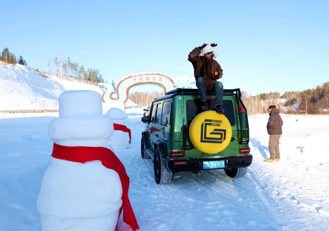 當日中午,隨著車隊緩緩駛?cè)氡睒O島景區(qū)南門,美麗的雪地廣場瞬間被熱情點燃。游客們紛紛走下車,不顧零下數(shù)十度的嚴寒,或在松軟的雪地上玩起汽車漂移,或與雪人合影留念,或揚起漫天雪花享受雪的輕撫,汽車馬達的轟鳴與歡聲笑語交織回蕩,讓這片銀裝素裹的天地化作歡樂的海洋。