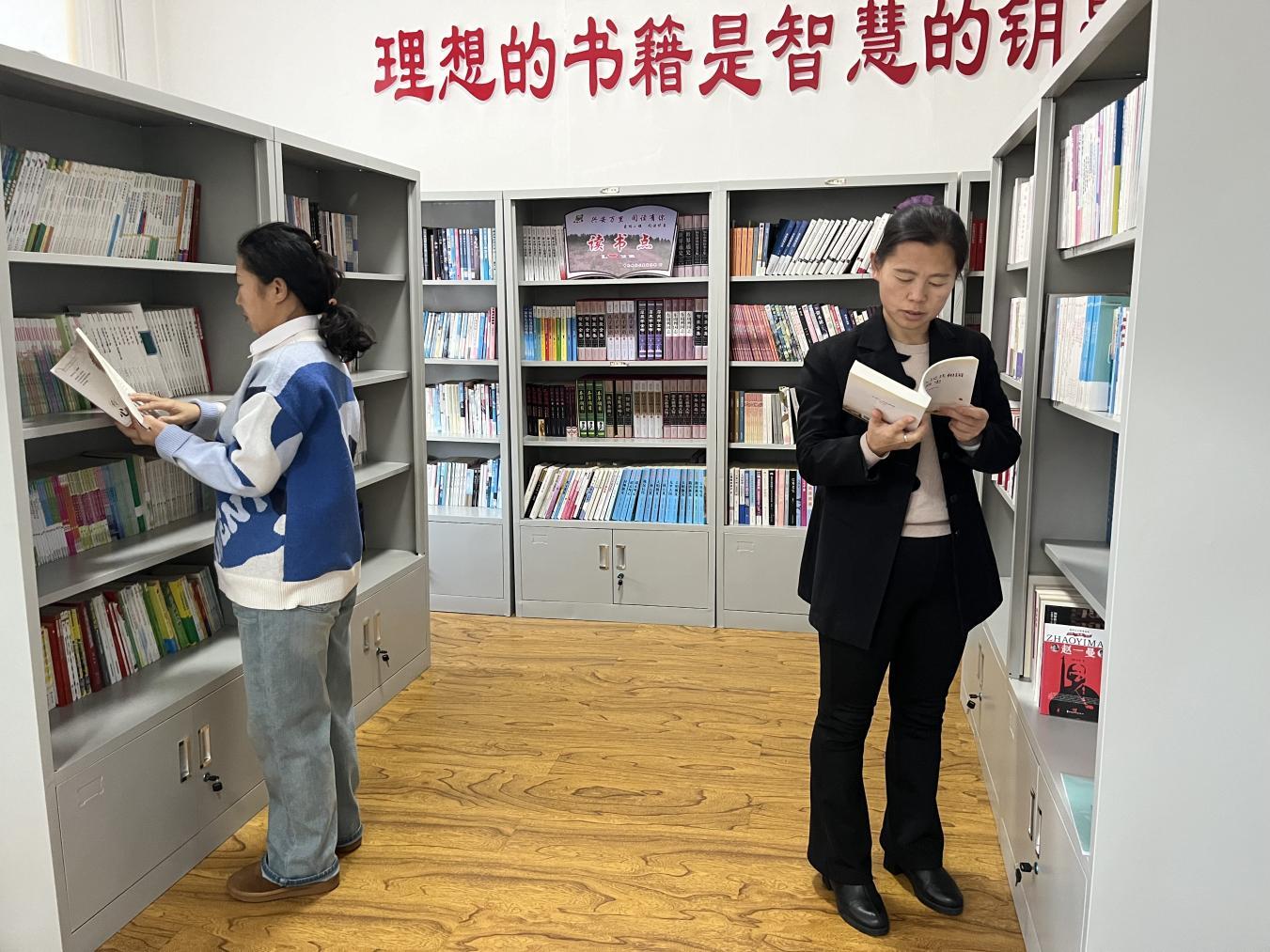 林場干部職工正在挑選書籍(趙可心 攝)