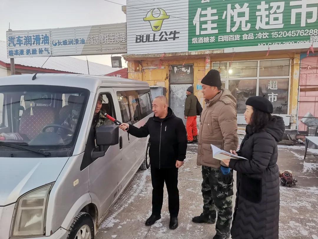 林場(chǎng)宣傳員為車(chē)輛駕駛員發(fā)放安全宣傳材料(趙可心 攝)