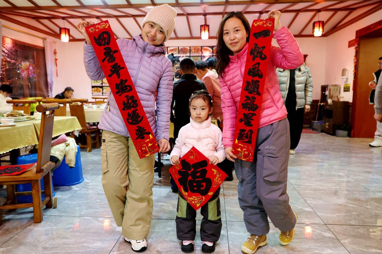 “龍河就是我們在外游客的家。”領(lǐng)隊派派說,旅游團隊里上至65歲、下至4歲,專程趕來過除夕,大家把驛站當(dāng)故鄉(xiāng),在最北方感受家一般的溫暖?!吧碓谧畋狈?,心系黨中央。”江蘇鎮(zhèn)江游客吳麗萍的話語,道出大家共同的心聲。游客們紛紛送上祝福:祝全國人民新年快樂、萬事如意。
