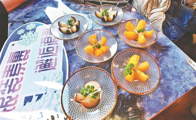 凍梨、凍柿子切塊、擺盤(pán)“搬上”列車(chē)。原勇攝